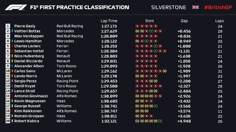 Confira a classificação final do GP da Inglaterra: