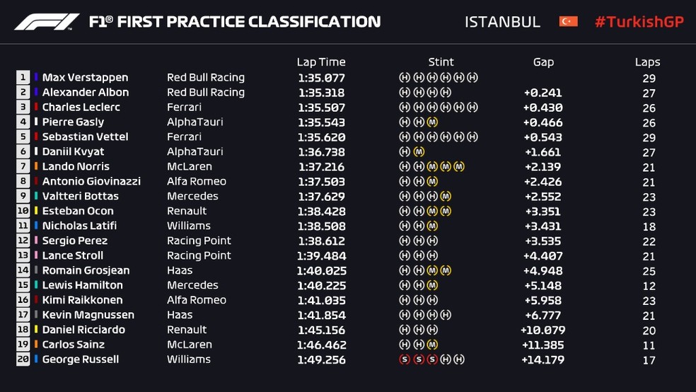 Sobre a corrida? A péssima largada de Bottas e seu azar ficaram em segundo plano, mas mais uma vez é inclassificável esse cara ser o grande adversário de Hamilton, que venceu sem fazer muita força com Max Verstappen em segundo. Sérgio Pérez vinha para mais um pódio tranquilo quando o motor Mercedes explodiu no final. O mexicano é uma das pessoas mais injustiçadas do mundo e deve anunciar amanhã que não estará na F1 em 2021. O pódio caiu de paraquedas para Albon. Sua situação não muda muito mas ao menos ganhou mais um troféu para a coleção.