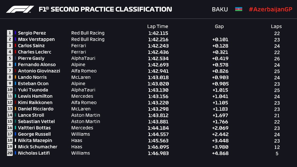 Confira a classificação dos treinos livres para o GP do Azerbaijão: