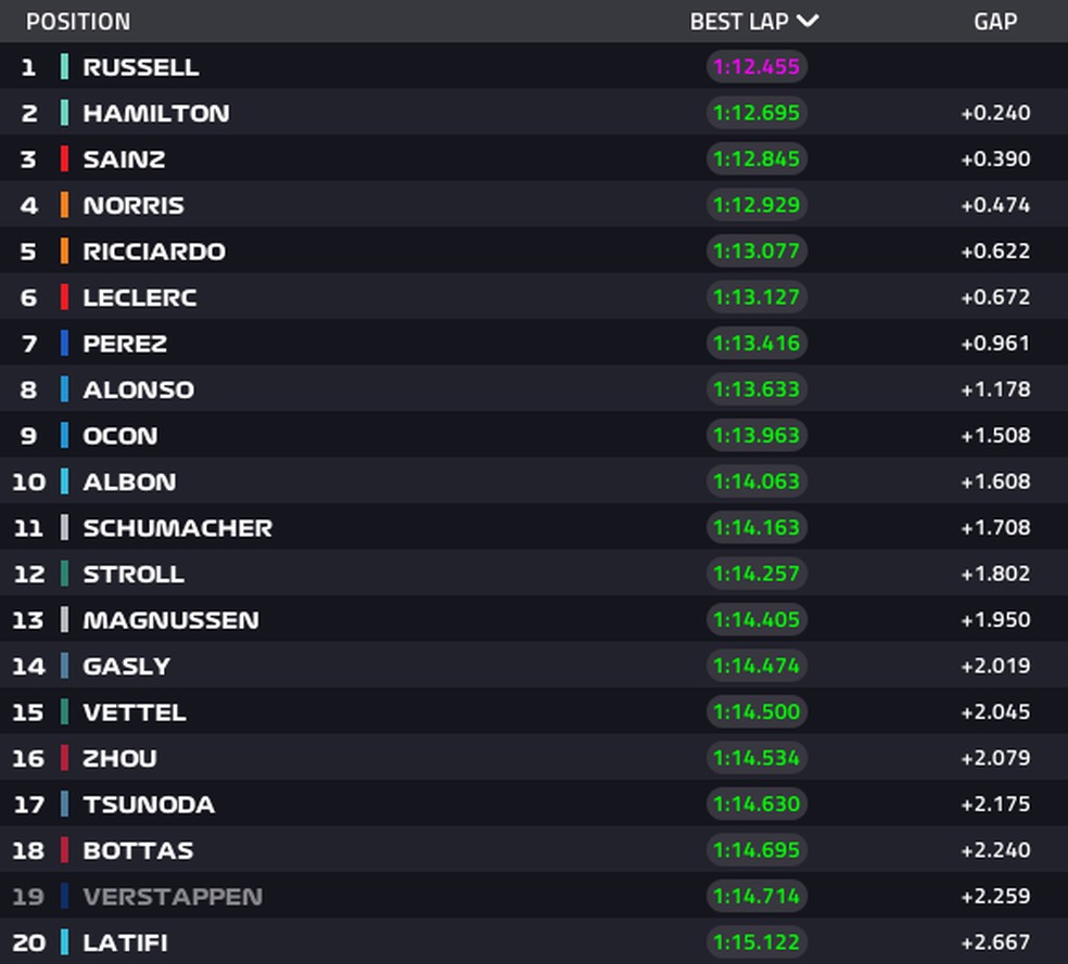 5 - George Russell (Mercedes) - 170 pontos