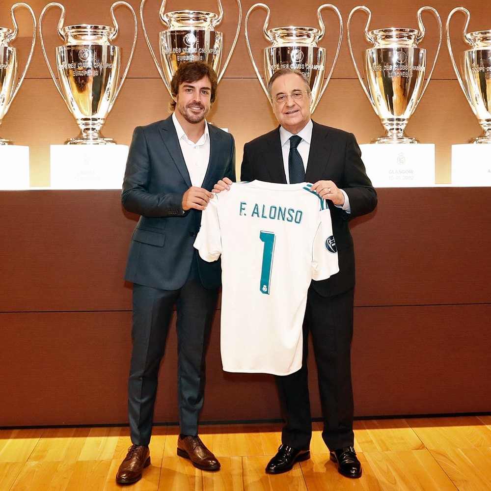 Definido o futuro de Alonso: o Real Madrid. Ok... o piloto foi homenageado como membro do clube honorário da equipe espanhola. Os feitos do asturiano foram destacados pelo presidente Florentino Pérez. Don Alonso visitou o vestiário e o gramado do Estádio Santiago Bernabéu.